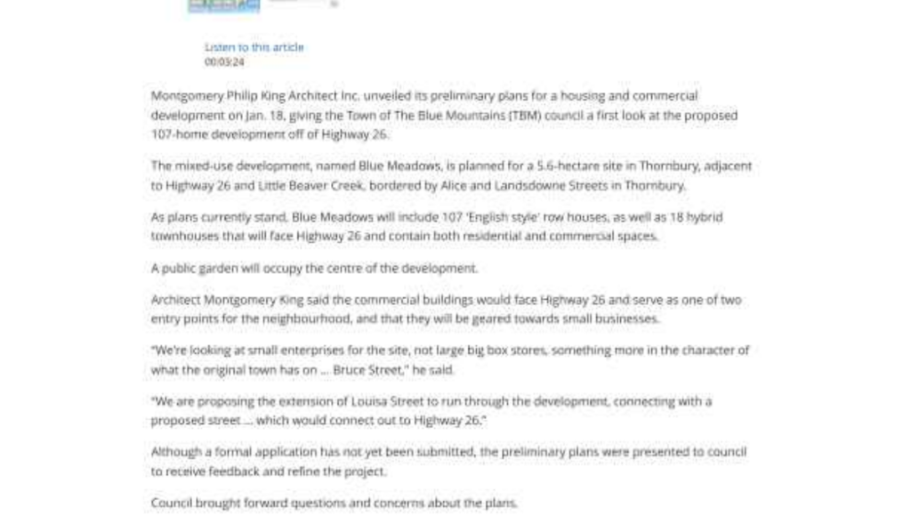 Council Presentation Blue Meadows Colored Concept Download 13394R Plan Download Blue Meadows A1.0 Download Blue Meadows A1.1 Download Blue Meadows Commercial Buildings Elevations Download Blue Meadows Commercial Townhouse Block facing Hwy 26 Download Blue Meadows Flat Roof Download Blue Meadows Louisa Street Commercial Townhouse Block Download Blue Meadows Street A B Townhouses Download Blue Meadows Street Sections Download Introductory Letter for Blue Meadows Download Collingwood Today Report Download Request to make a Deputation form Town of the Blue Mountains Blue Meadows Download © 2021 BLUEMEADOWS | ALL RIGHTS RESERVED BLUEMEADOWS. Web Development by CSI Software